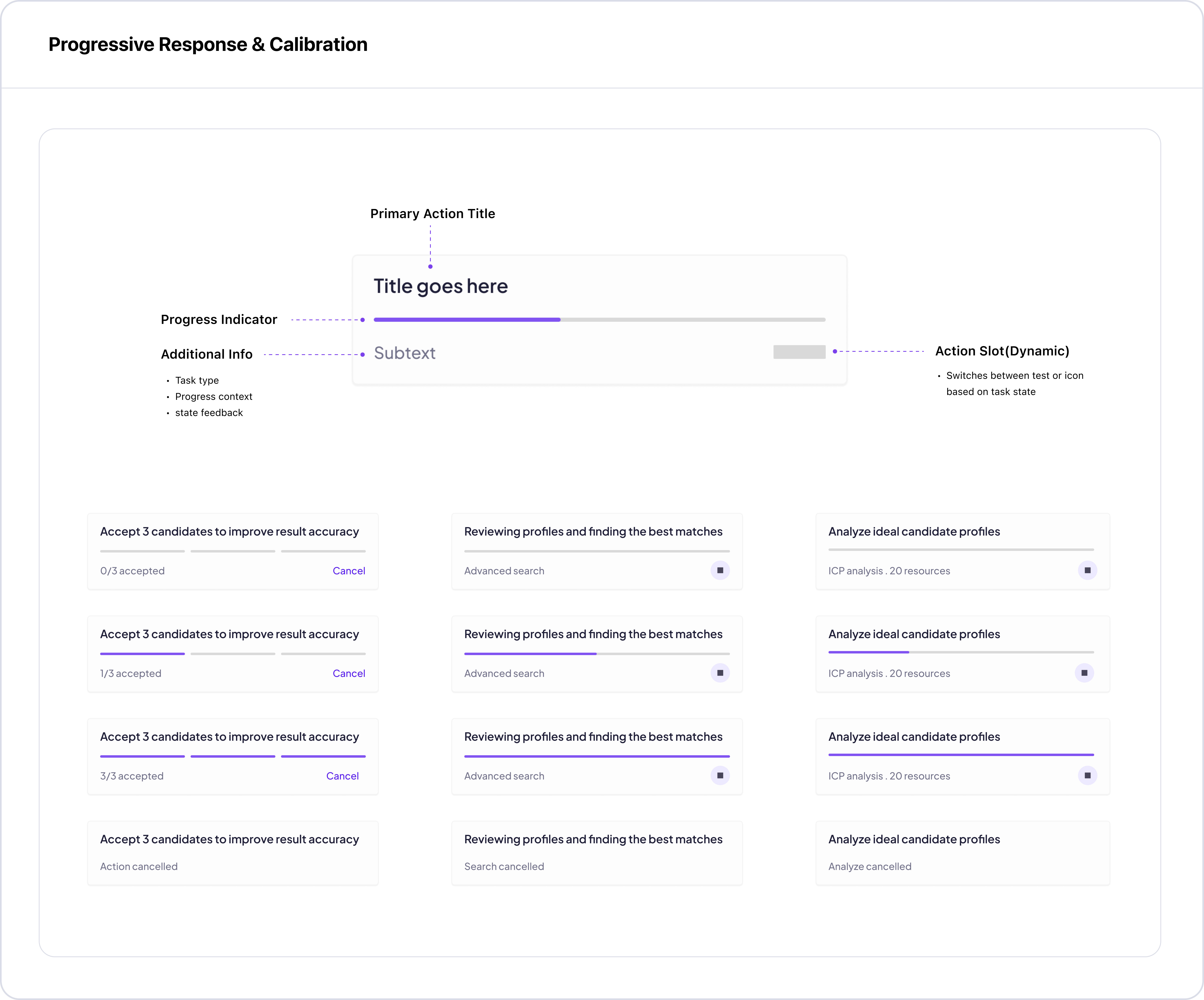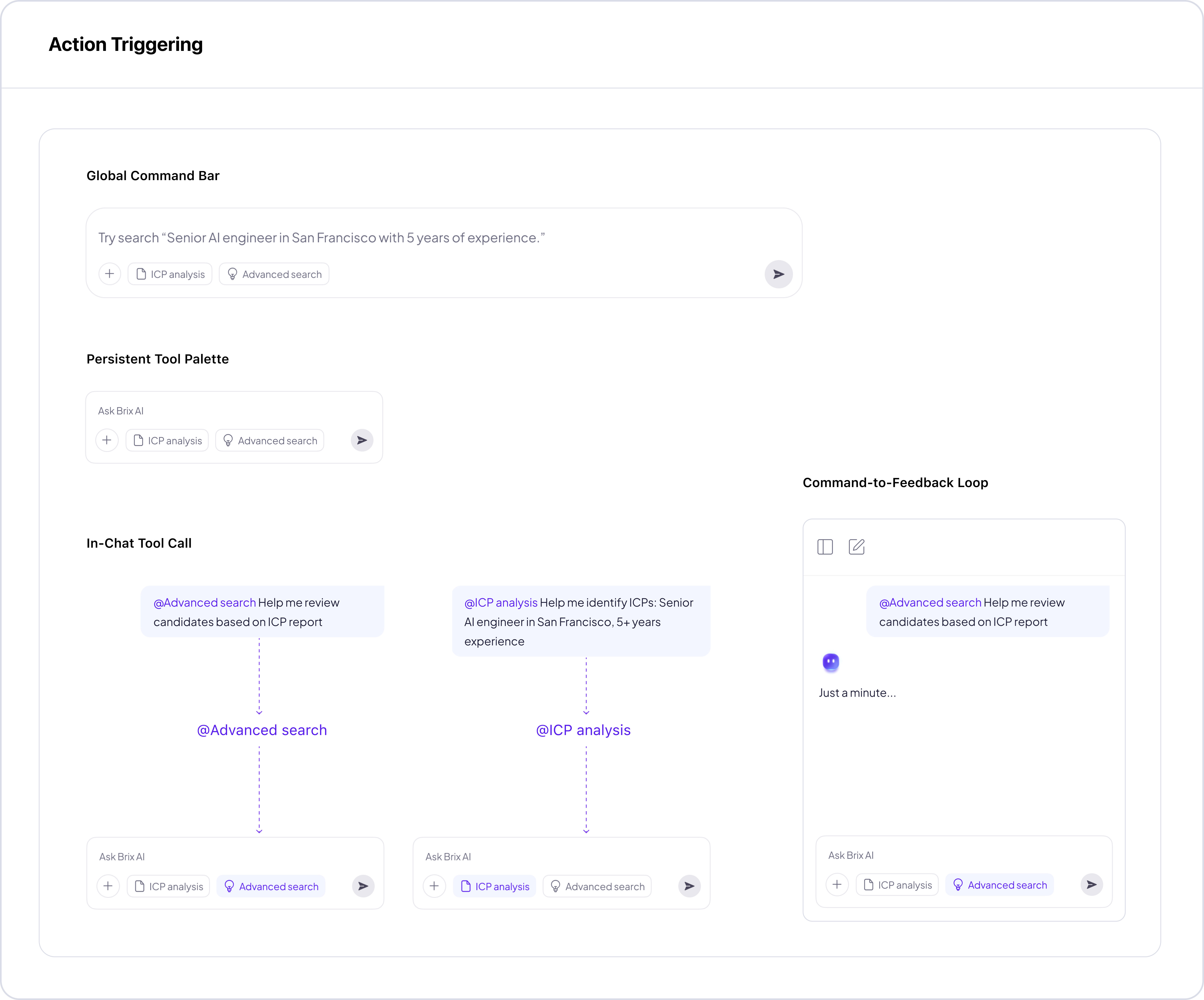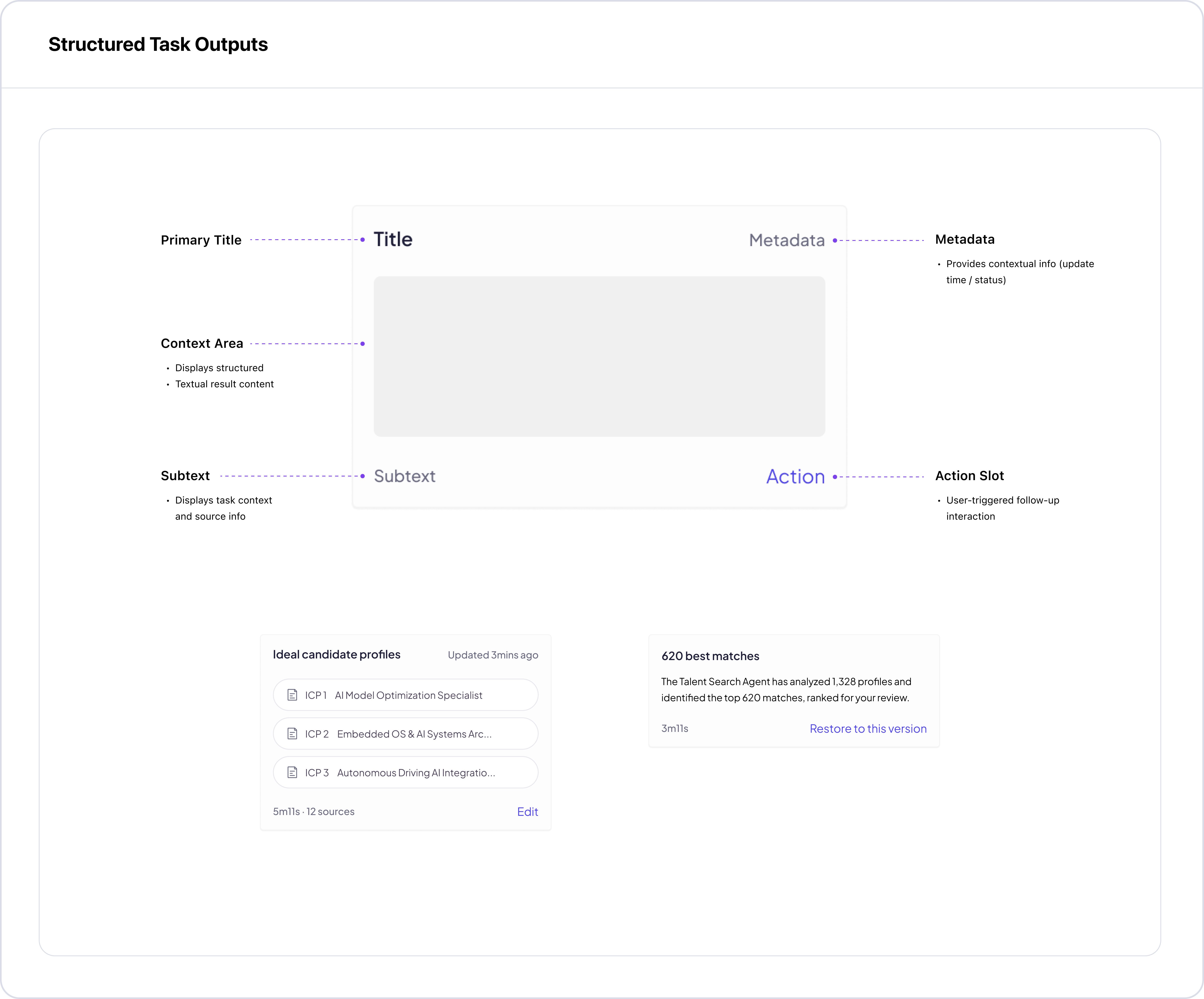 We found that professional recruiters care deeply about efficiency. Their expectations differ from traditional SaaS products — they want the AI agent to handle most of the work with as few steps as possible.